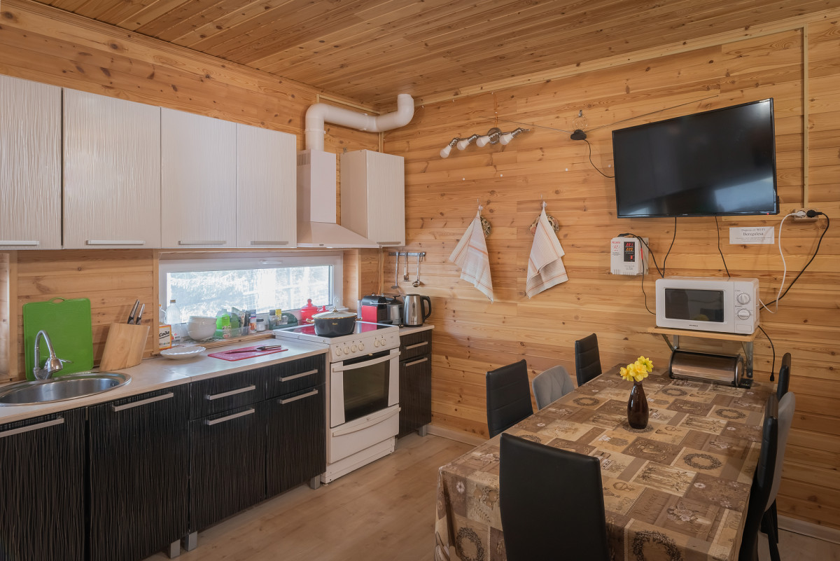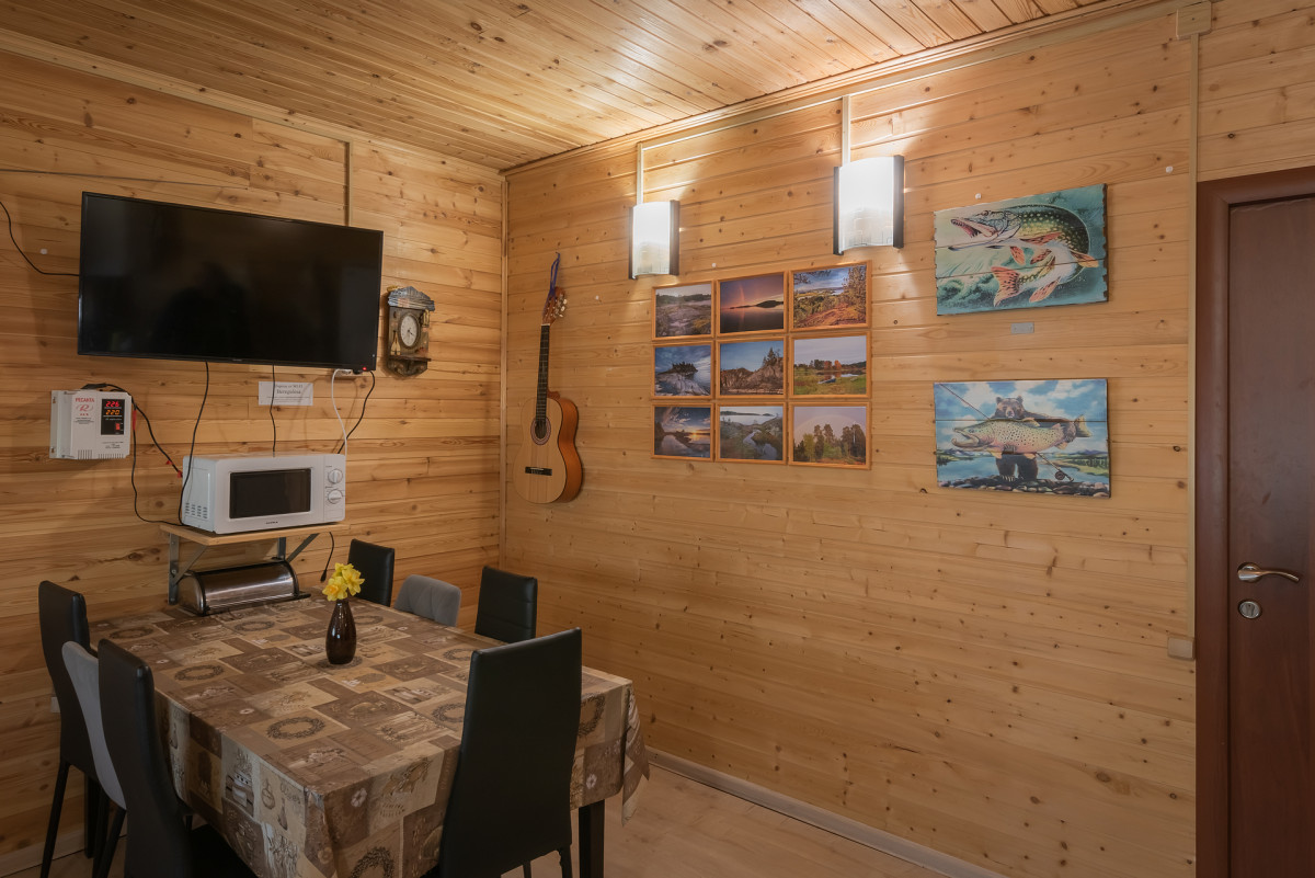 обеденный стол, телевизор, микроволновка
